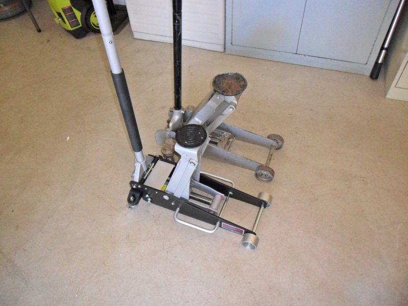The jack arrived this morning. The box was a little roughed up but acceptable. I was able to carry the box into the garage with one arm by grabbing the plastic banding on the box. Not bad as far as weight goes. It would have required both arms and walking in a strain with my old jack. When you do a comparison of the new jack and my old Sears jack it is easy to see the old jack is much beefier (and much heavier). Everything from the wheels and casters to the frame is much more heavy duty on the Sears jack. To the credit of the new jack it is much easier to move around and I really like how fast it goes up without a load. It goes sown about 1/2" lower and raises about 3/4" higher than my old jack. The new jack handle is about 9 inches longer than the old jack. I'm not sure I'm going to like that but I do like the padding around the bottom of the handle. The new jack has a large handle on each side to help with positioning the jack under the car. I like that and it would have really been handy on the old Sears jack. I was always worried about having to grab the frame of the old jack to move it and taking a chance of pinching a finger.. To get the old Sears jack all the way up took 16 full pumps of the handle. To get the new jack all the way up took 6 full pumps. I really like that. That is one of the reasons I bought it. I have not tried to lift a vehicle yet. I'm going to let the new jack sit overnight before bleeding the air out of it tomorrow. Bleeding out any air is recommended before using the jack.1 point