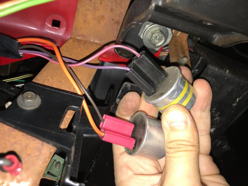 1. 1990 Reatta Convertible...so maybe different for some reason... A-ha! I HAD to remove the instrument Panel Cluster Trim Plate (pg.8C-3)...then the Knee Bolster (pg. 8C-3 & 8C-4)...this was a trick. Someone before me broke a LOT of connections attempting this. Thanks! Made it easier for me to remove. But now I have to do damage control. Ugh. ...then I had to remove the Instrument Panel Steering Column Reinforcement Plate (pg. 8C-5). THEN the magic! Seat all the way back, towel over the door threshhold to "save" my back (it didn't save my back...I'll recover eventually). Two silver cylinders on the passenger side AWAY FROM the steering column. By the way...nothing to do with the steering column...and definitely not reachable without removing above panels. In fact, even with everything removed, I had to push the flasher cans up, out of the spring clips, then remove the clips themselves (with needle-nosed plies and a flat-head screwdriver) to make enough space to work the cans down through the resultant opening. I LOVE this car, but...uh...thanks Buick!