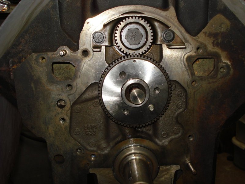 10. Yes, you are missing the gear behind the cam sprocket. It lines up dot to dot just like a cam to crank setup. I have enclosed two photos of the bare cam and with the balance shaft gear in place. The biggest issue I have with this is it is unlikely the cam sprocket and crank sprocket line up properly. A straight edge across the two should be flush with each other. The whole reason the 3800 has such a skinny timing chain is because the balance shaft drive was added which took up real estate for the chain and sprocket. I see yours is an '88 which has a slightly different thickness (thicker) drive flange that bears up against the block where the later cams have a little thinner flange with a spacer shim washer behind it. They are interchangeable but the early cam must be installed bare and the later, 89 and 90, must have the shim washer.