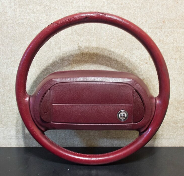 I've started working on the interior bits while I sort out electrical issues, and thought I'd share. I finished working on the steering wheel with freshly wrapped leather and I repainted the steering wheel badge and added a little highlighting for the airbag (to quell some worries from family- now they can READ that it has the airbag!) The badge was airbrushed with a layer of gold then translucent yellow and orange and a paint marker for the black parts.