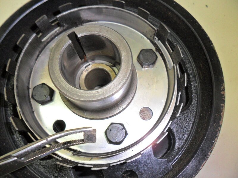 6. The new CPS arrived yesterday from Amazon. I installed it this morning. The engine fired right up and ran like it should. I was a little surprised at what happened. The plastic center section of the CPS had partially broken away allowing the magnet inside to fall out. (photos below) That explains why I lost both, 3X and 18X CPS signals at the same time. The magnet had stuck to the shutter ring but didn't damage it. I was lucky. I used my battery powered impact wrench to remove the crankshaft bolt. It had to hammer a while to break it loose. I put the bolt back in with blue Loctite and let the impact wrench hammer to get it tight. No, it's not up to spec but I don't think it will come loose.
