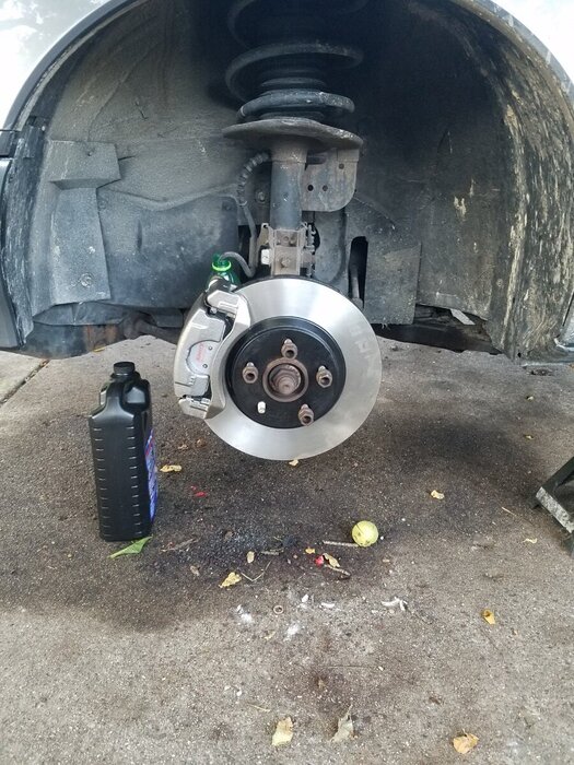1. COMPLETE AND WORKING WELL! Writing it up so no one else has to buy four different master cylinders! Parts list for Vacuum booster conversion: Booster from an '89 Riviera - Cardone p/n 5471055 Master cyl from a '90 LeSabre Wagon - AC Delco p/n 18M172 appropriate nuts, flare tools, a tee for the front lines, and a bit of brake line. and a new check valve for the booster and some hose to attach it to the manifold. Caution --- Master Cyl is inverted flare and imperial threads... reattas are bubble flare and metric threads. you may need both flare tools. anti-lock will no longer work Caution pt.2 --- the eye on the actuator rod may not be the same size. I ended up taking the eye off the Reatta booster and threading the rod on the Riv booster to accept it. Booster itself bolted right in place with no fitment issues aside from jostling some lines around. Big Brake conversion - 1998 Oldsmobile Aurora Brakes Parts list: Front calipers with hangers: Raybestos p/n RC10840 and RC10839 Front Rotors: Raybestos p/n 56641 Rear calipers with hangers: two of the right caliper - Raybestos p/n FRC10886 (i bought a R and a L and one bleeder is upside down) Rear Rotors: Raybestos p/n 56241R Front Caliper bracket bolts - Dorman p/n 14006 I did all new hoses as well because mine were 34 years old. I used Reatta hoses- The rears had to be modified a bit to bolt to the new calipers- just a bit ground off one face of the fitting. It all essentially bolts right up with the exception that the front caliper mounts have to be drilled out. There was still plenty of meat left after embiggening the holes. These will most certainly NOT fit under the stock wheels. I currently have no fix for the parking brakes either. I'm working on that, though. Now, it might be that I was driving around for quite some time without power brakes, and it might be that my Teves unit was slowly dieing a terrible slow death for quite a while, but holy moley... I have all the brakes I will ever need on this thing now. Evidence against things I read about before taking this on: "Riviera stuff will just bolt right up no issue.. its practically the same car" NOPE - Rivs have four independent brake lines run to the master, with oddball unobtanium proportioning valves that thread into the master. Reattas have independent lines for the front and one line that runs to the back with a proportioning valve at the branch that splits to each rear wheel (just forward of the drivers rear wheel). "Aurora brakes bolt right up" NOPE... 98 and NEWER aurora brakes bolt right up. just have to drill the front caliper mounts to 9/16. Auroras also have a 1 1/8" bore master - rivs have a 1". LeSabre master solves that problem as well. Lastly a bunch of pics to show how it all fits. Always up for answering questions!